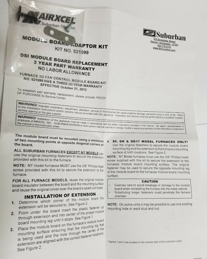 Suburban Furnace Circuit Board Kit 521099 - RV Heater Fan Control Ignition 520820